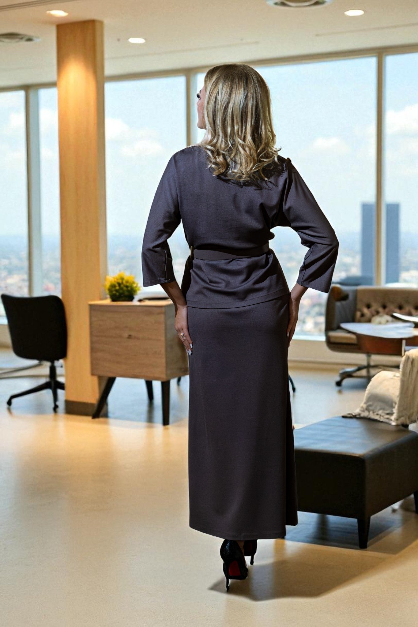 Compleu damă 2 piese: bluza si fusta midi - Nova Set
