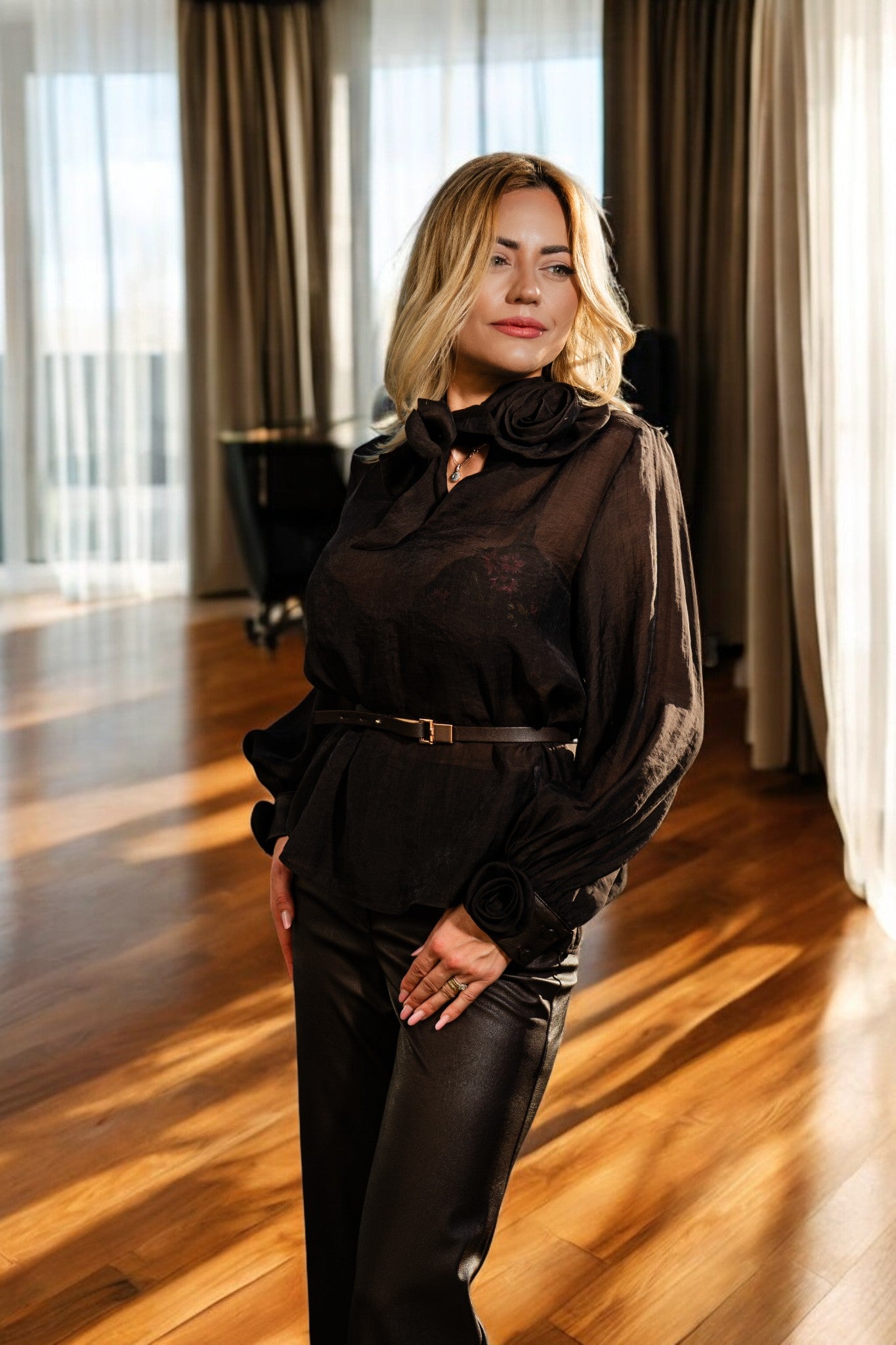 Îndrăzneț, rafinat și cu un aer ușor edgy, acest costum pentru damă reinterpretează eleganța urbană într-o manieră modernă. Pantalonii din piele eco oferă o siluetă bine conturată și un look puternic, în timp ce cămașa, cu detalii atent lucrate – precum volane fine, nasturi statement sau inserții delicate – adaugă un contrast feminin și sofisticat. Fiecare piesă poate fi purtată atât împreună, pentru un outfit complet și memorabil, cât și separat, în combinații variate. Ideal pentru evenimente speciale, întâlniri de afaceri sau momente în care vrei să te remarci prin stil și atitudine.