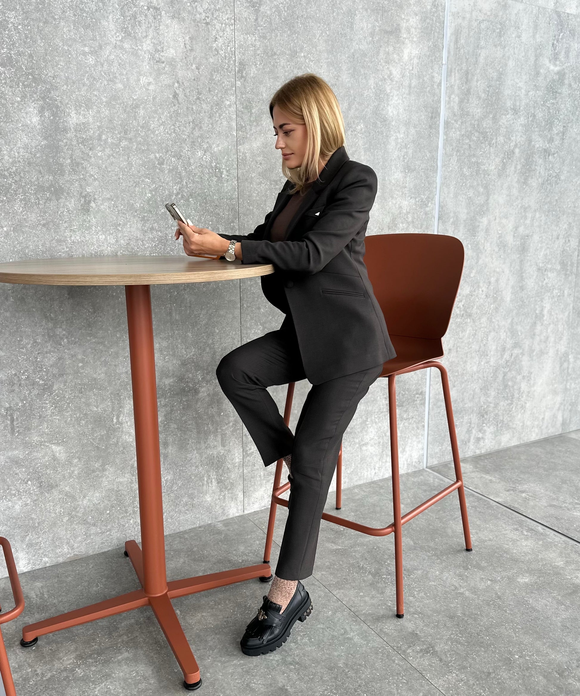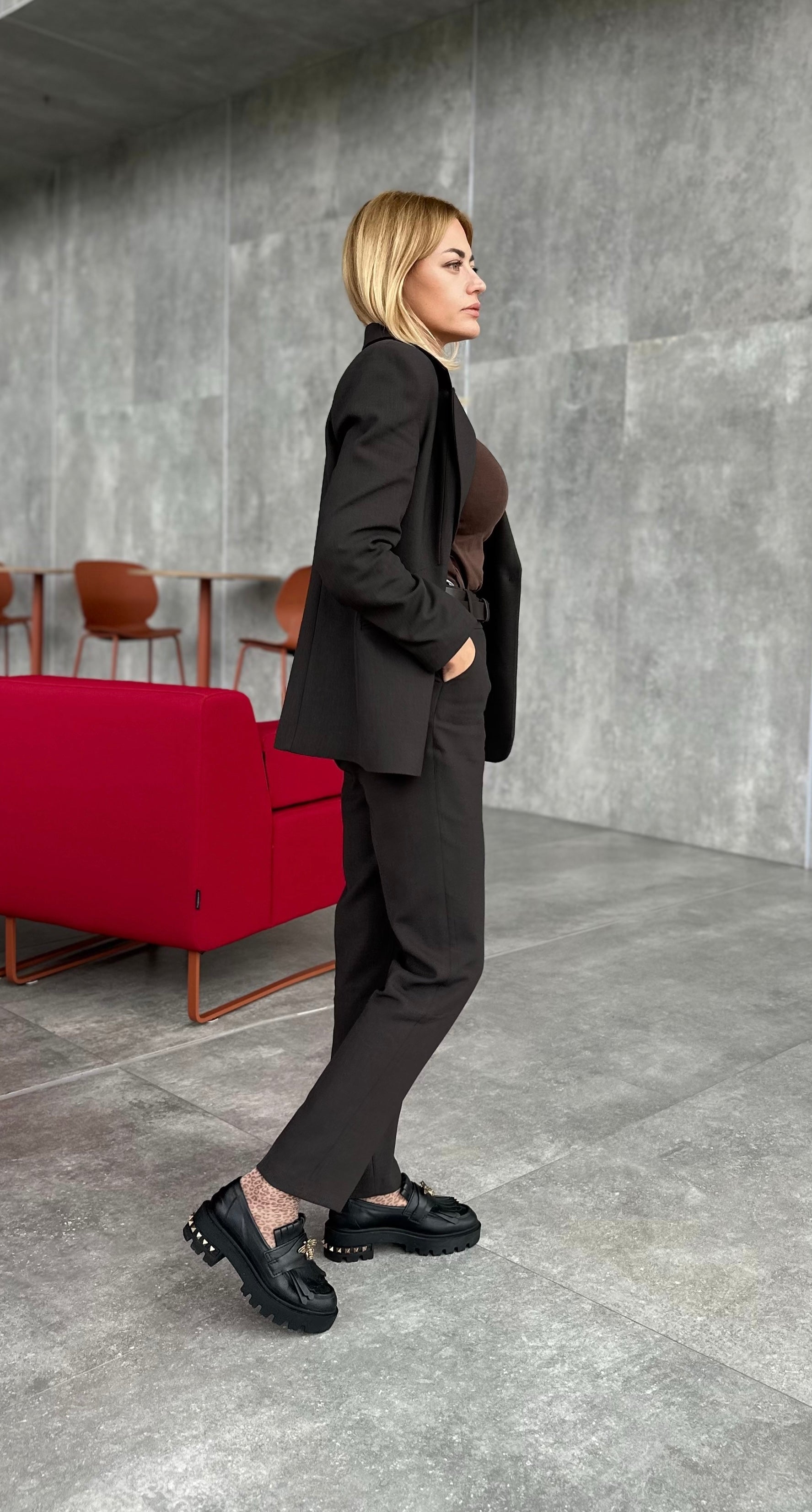 Costum damă dark brown – o alegere sofisticată pentru un look impecabil. Culoarea intensă și croiala elegantă subliniază o siluetă modernă, perfectă pentru birou sau evenimente speciale. Un mix reușit între clasă, stil și profesionalism.