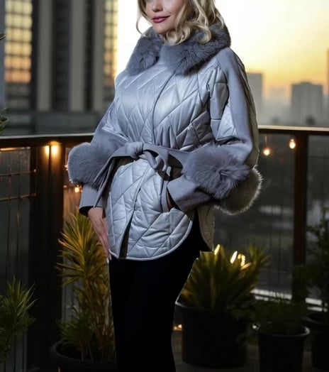 Un model chic și practic, gândit pentru sezonul rece. Scurta este realizată din material de calitate, cu finisaje elegante și blană naturală ce adaugă un plus de conform și rafinament. Perfectă pentru zilele reci de iarnă, fiind ușor de integrat în ținutele casual sau elegante.