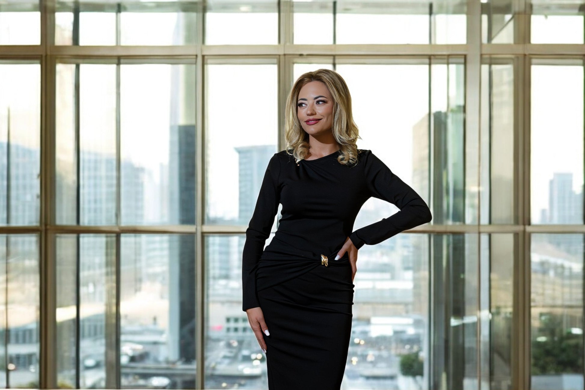 O rochie elegantă și sofisticată, ce evidențiază silueta prin croiul mulat. Nuanța clasică de negru este completată de un detaliu auriu subtil în talie, adăugând rafinament și un punct de atracție discret. Perfectă pentru evenimente de seară, cine speciale sau apariții în care vrei să impresionezi prin stil și eleganță.