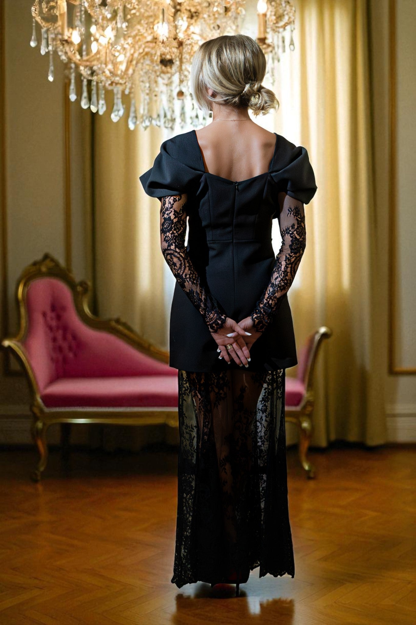 Rochie de seară cu fusta din dantela neagra - Lina