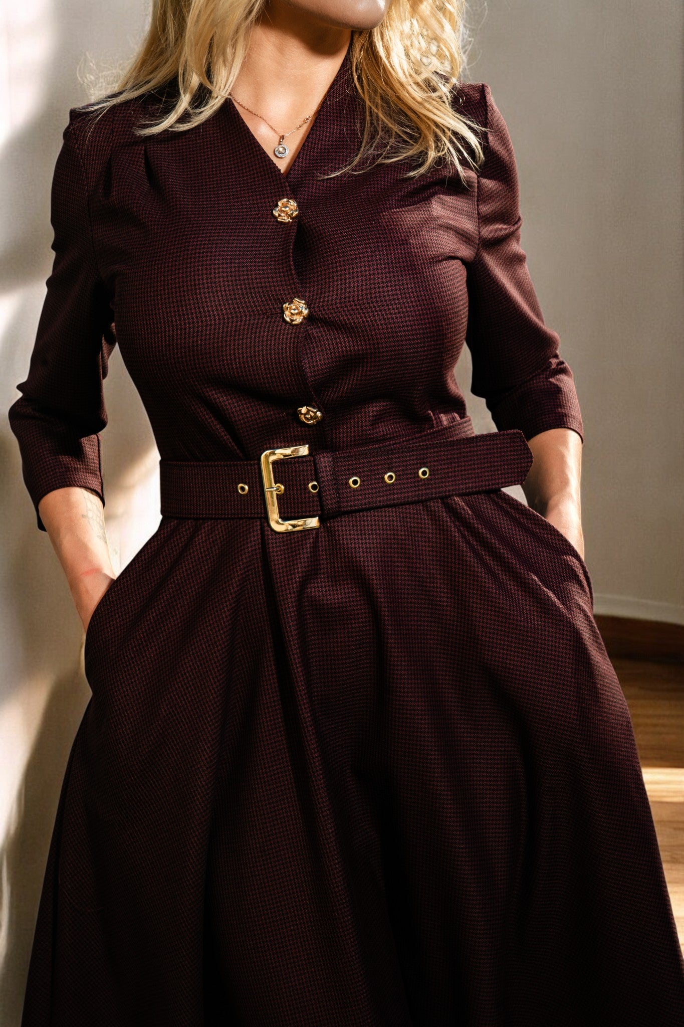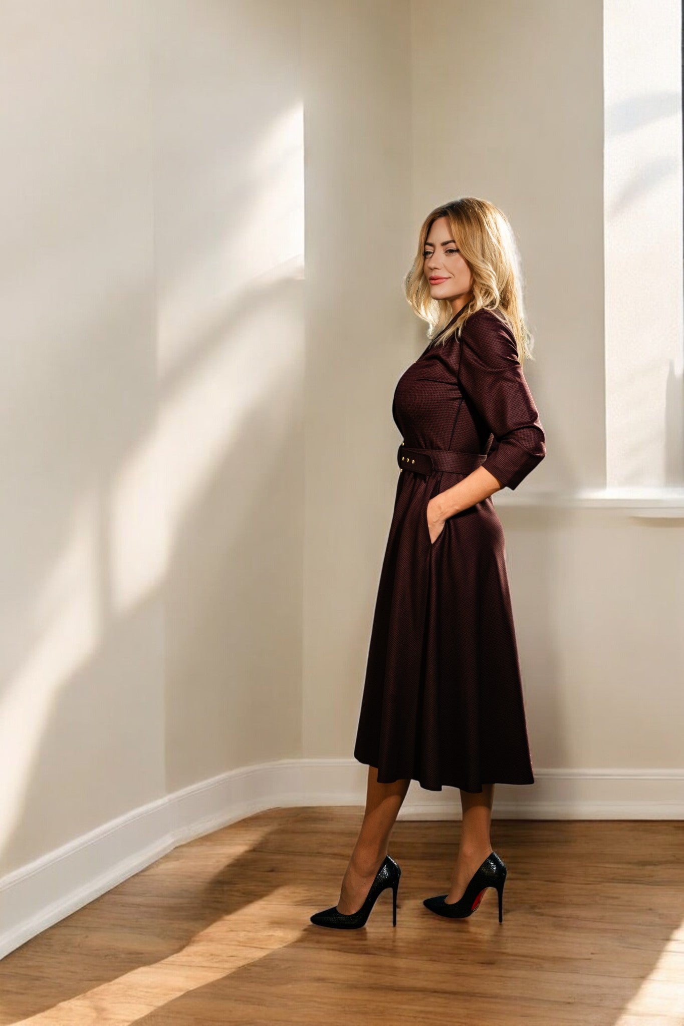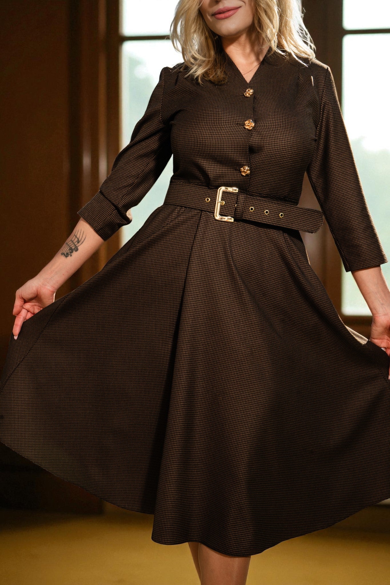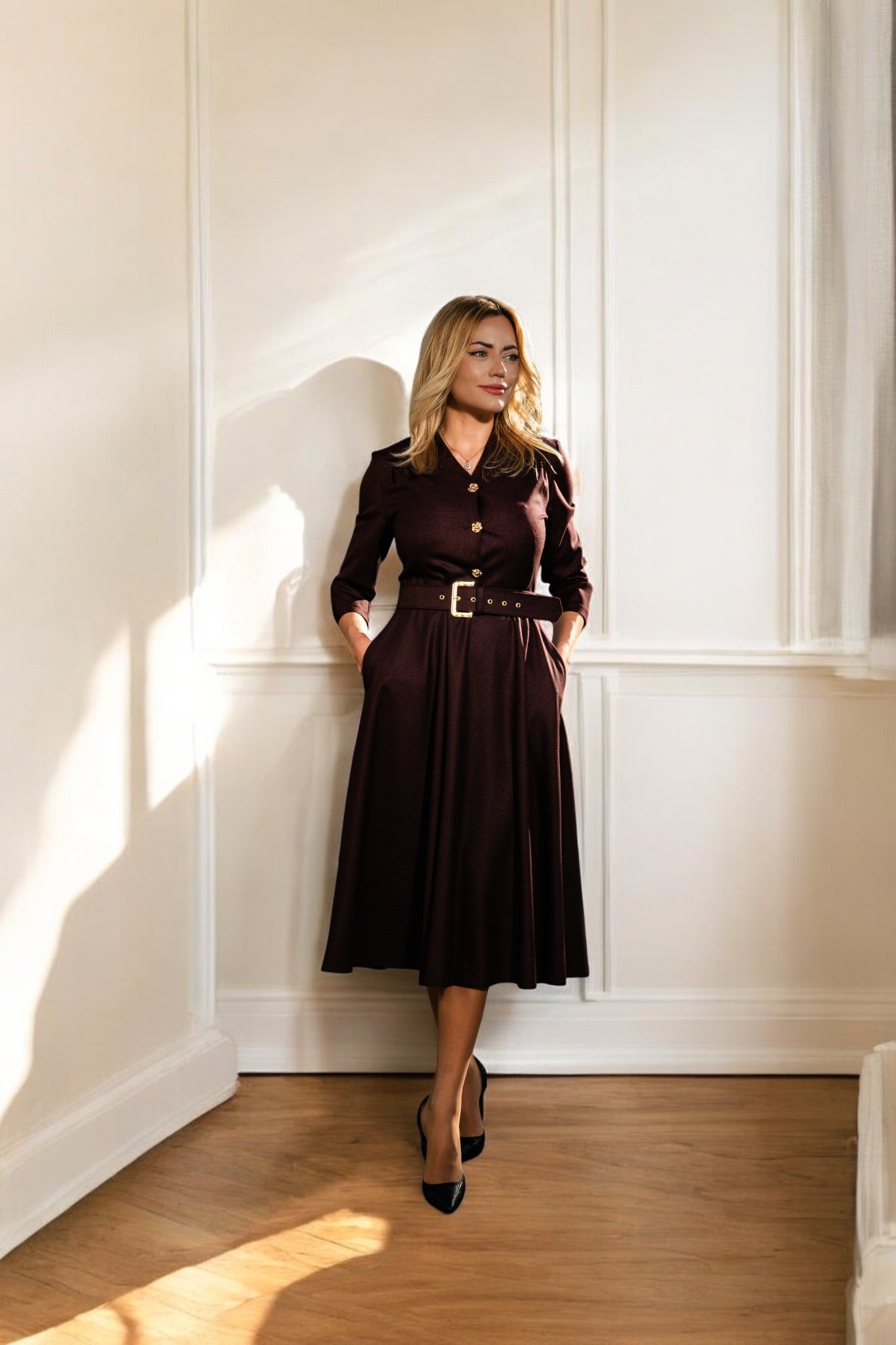 Rochie în cloș cu centură - Chic Cocoa Dress