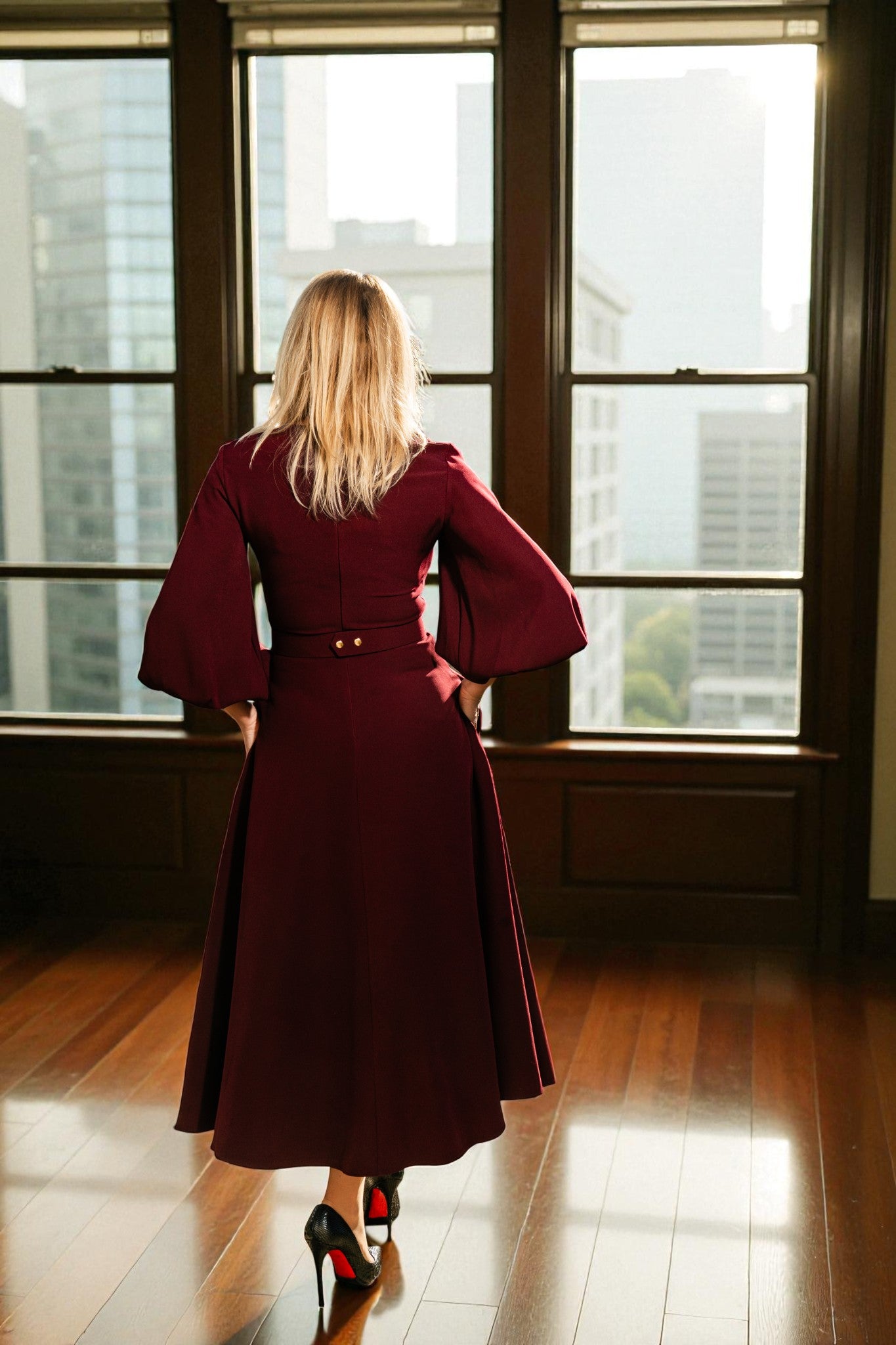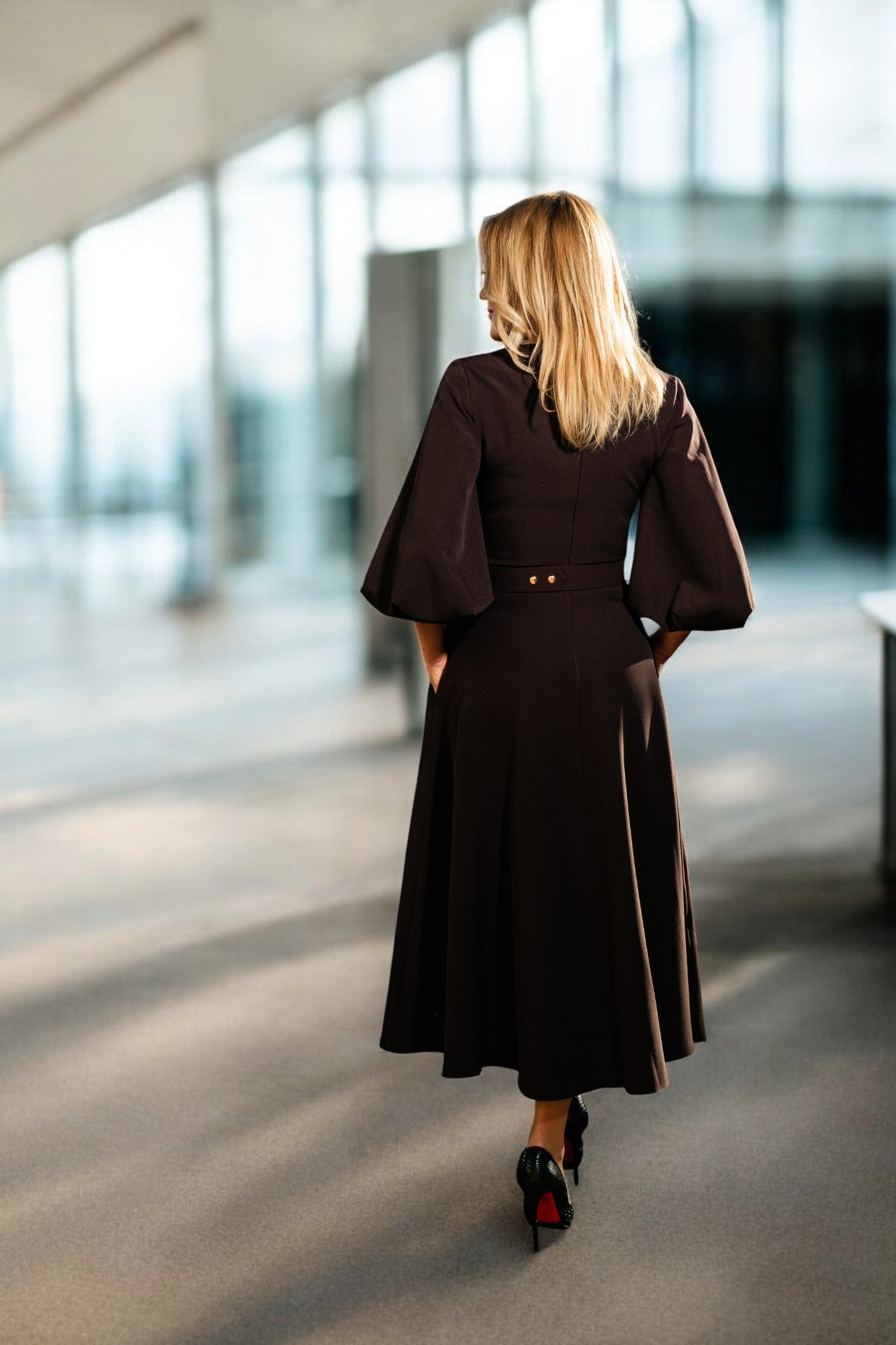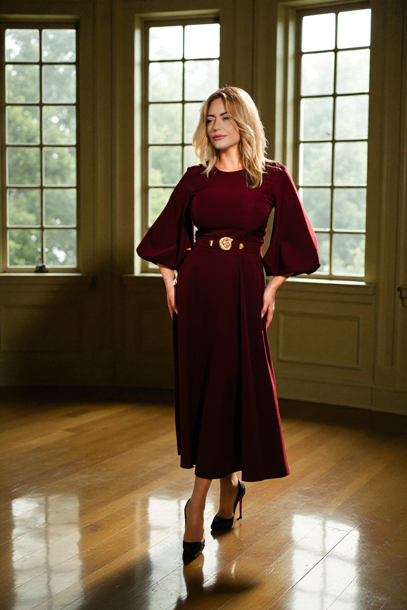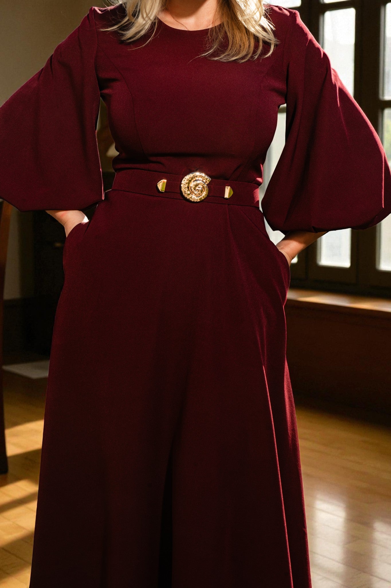 Rochie midi cu centură și accente aurii - Celeste Midi
